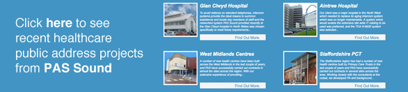 PAS have installed public address, induction loop and intercom systems in hospitals for many years, and have also provided background music systems for waiting areas and clinics. With twenty five years experience of sound and communications systems in healthcare sites of all descriptions and sizes, we can easily tailor a solution for your requirements. |